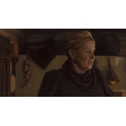 A shot of Dominikowa talking to Boryna. Jagna's mother tries to defend her daughter after the events at the inn, but the old farmer does not seem convinced.