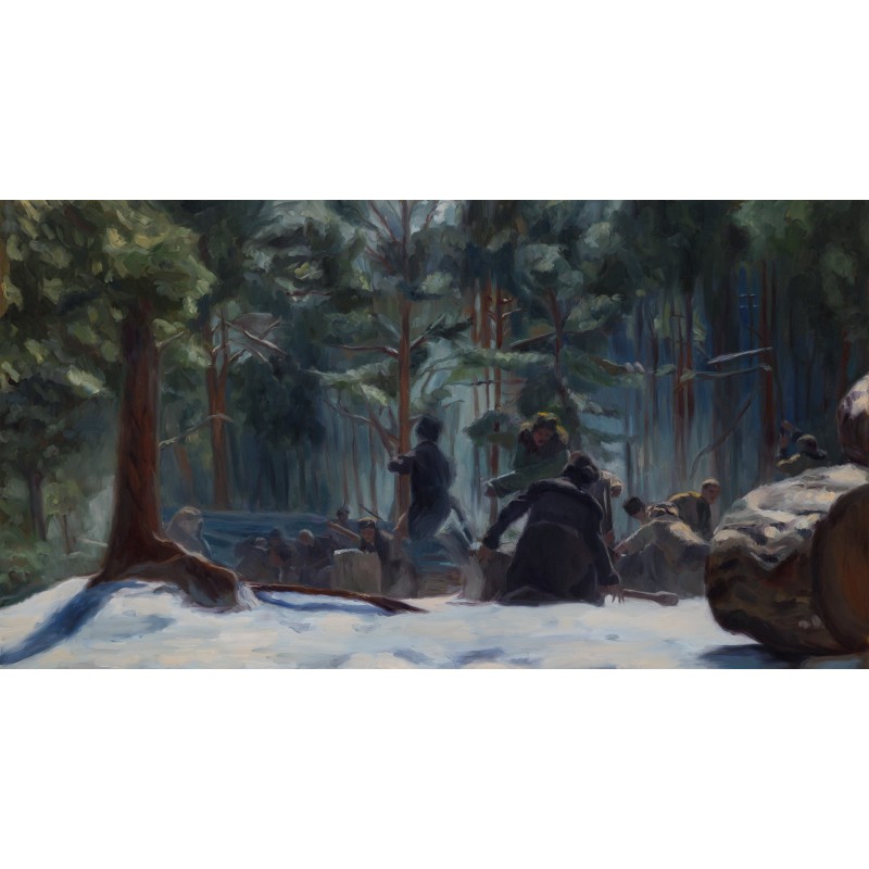 Oil painting from the film The Peasants - "Battle in the forest. Borowy attacks".