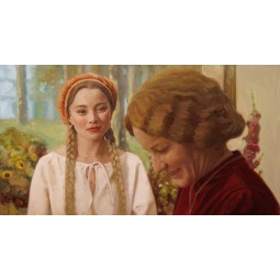 Oil painting from the film The Peasants - "Jagna at the Organists. Herbs, thank you".
