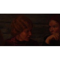 Ujęcie ze sceny 059, czyli już po ślubie, ale jeszcze przed zabawą. W scenie jest kilka ujęć z plotkującymi za stołem kobietami. Organiścina wydaje się zbulwersowana plotkami usłyszanymi od Zosi.