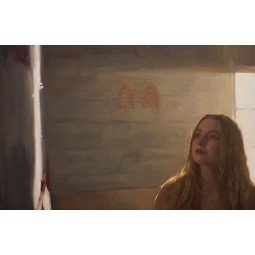 Cena 2 061,00 zł Cena podstawowa 2 290,00 złObraz olejny z filmu Chłopi - "Hanka. Chory tu leży".