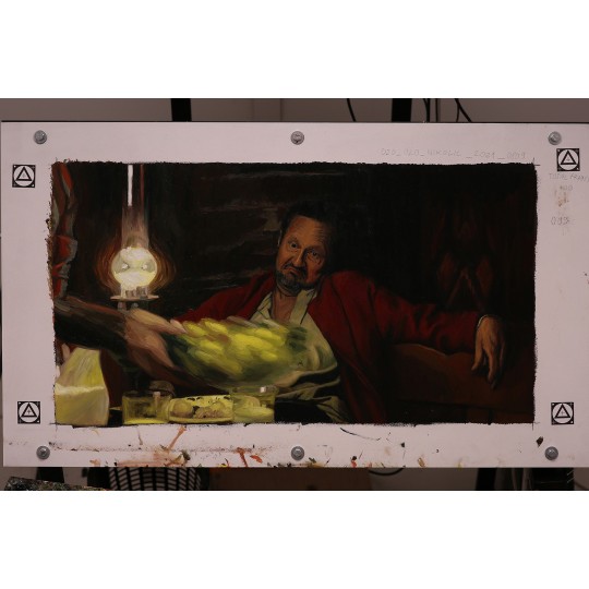 Obraz olejny z filmu Chłopi - "Siedzący Boryna. Jagna uciekła".