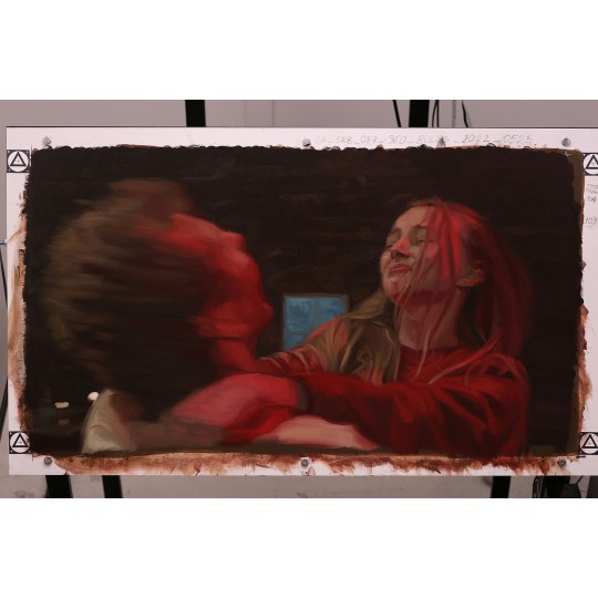 Cena 4 041,00 zł Cena podstawowa 4 490,00 złObraz olejny z filmu Chłopi - "Podwójny portret Dominikowej i Boryny. Wściekli się...