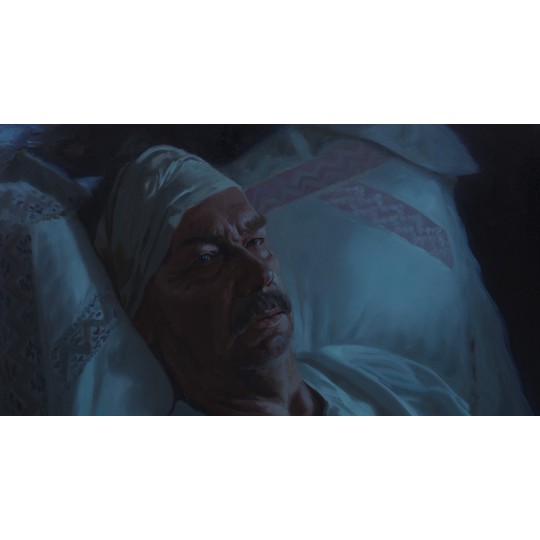 Cena 4 041,00 zł Cena podstawowa 4 490,00 złObraz olejny z filmu Chłopi - "Jagna i Kowal przy chorym Borynie".