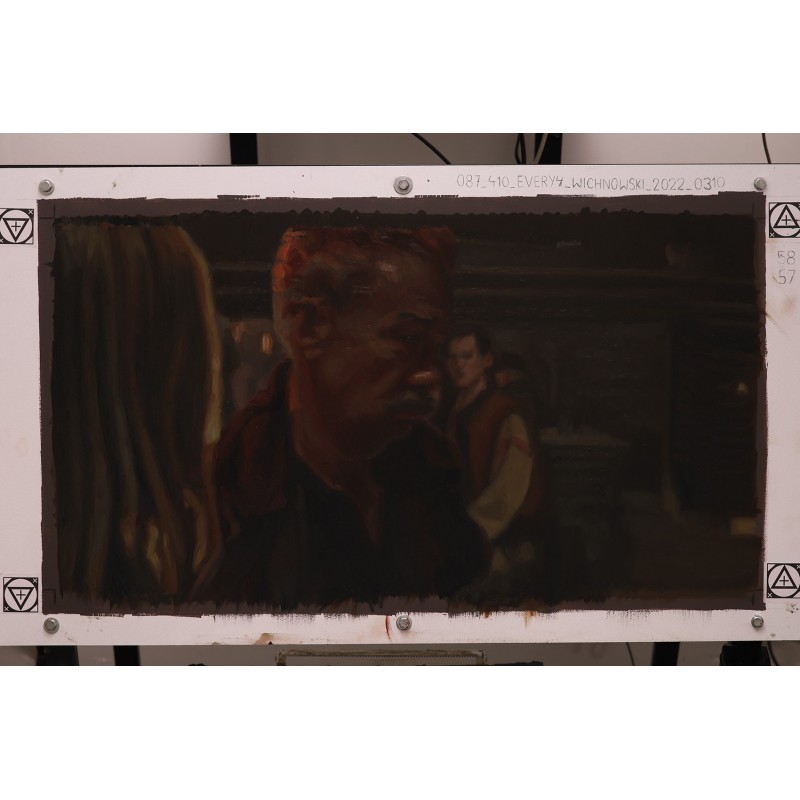 Cena 4 041,00 zł Cena podstawowa 4 490,00 złObraz olejny z filmu Chłopi - "Kowal. Ja nie przepuszczę".