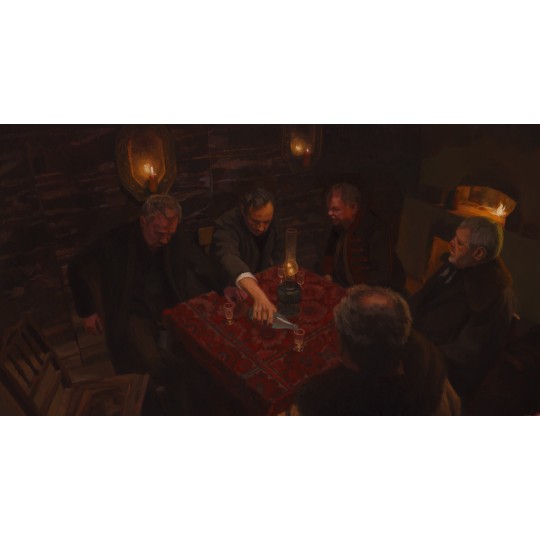 Obraz olejny z filmu Chłopi - "Narada w bocznej izbie. Ujęcie 010".