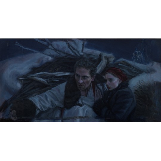 Obraz olejny z filmu Chłopi - "Jagna i Antek zimą na rozlewisku".