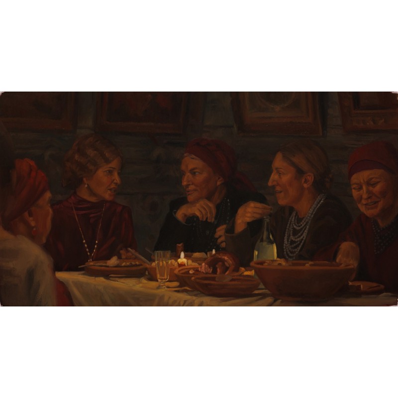 Obraz olejny z filmu Chłopi - "Wesele. Kobiety za stołem".