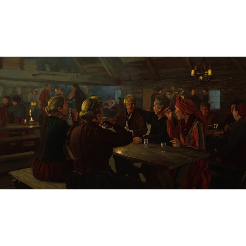 Obraz olejny z filmu Chłopi - "W karczmie. Na zdrowie!".
