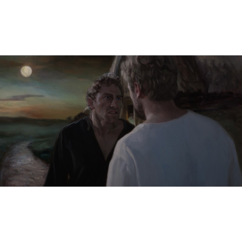 Obraz olejny z filmu Chłopi - "Antek i Mateusz. Sprzeciwisz się to całej gromadzie?".