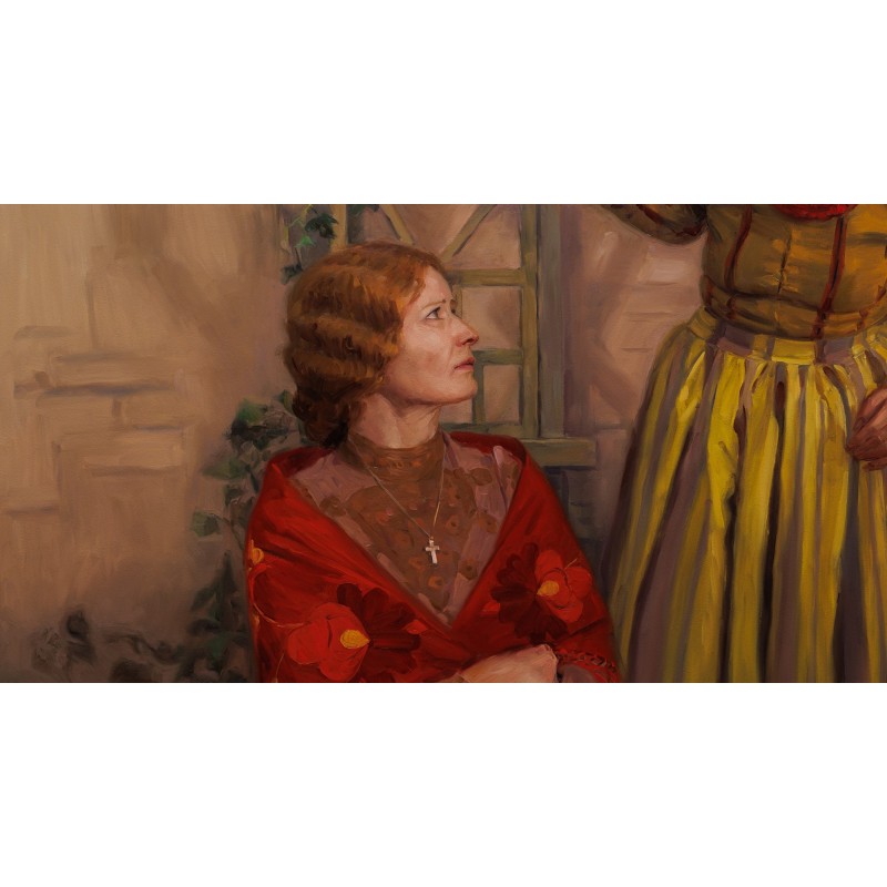 Cena 4 041,00 zł Cena podstawowa 4 490,00 złObraz olejny z filmu Chłopi - "Organiścina. Zosiu cóż ty!".