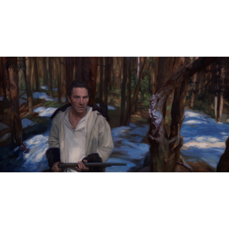 Obraz olejny z filmu Chłopi - "Antek w lesie ze strzelbą".