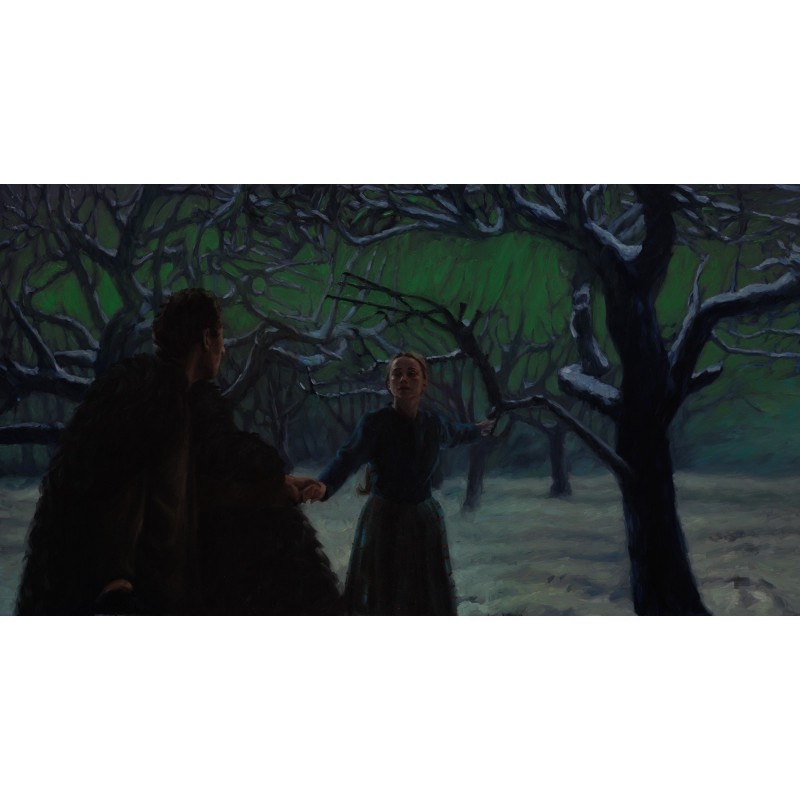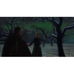 Ostatnia klatka ujęcia z sekwencji snu Jagny (scena 146). Przedstawia Jagnę i Antka w sadzie, w zimową noc. Pozycje drzew i ogólna kompozycja kadru jest bliźniaczo podobna do tej ze sceny w sadzie na początku filmu (scena 039). Jednak w przeciwieństwie do tamtej, to ujęcie zostało nagrane w studio na zielonym tle. Jedynym elementem scenografii na planie była pojedyncza gałąź, za którą łapie się Jagna.