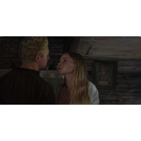 Bardzo dobrze, pod kątem warsztatu malarskiego, namalowane ujęcie z Jagną i Kowalem. Ładnie oddane i lekko rozmyte szczegóły tła i dobrze wydobyte emocje na twarzy aktorki.